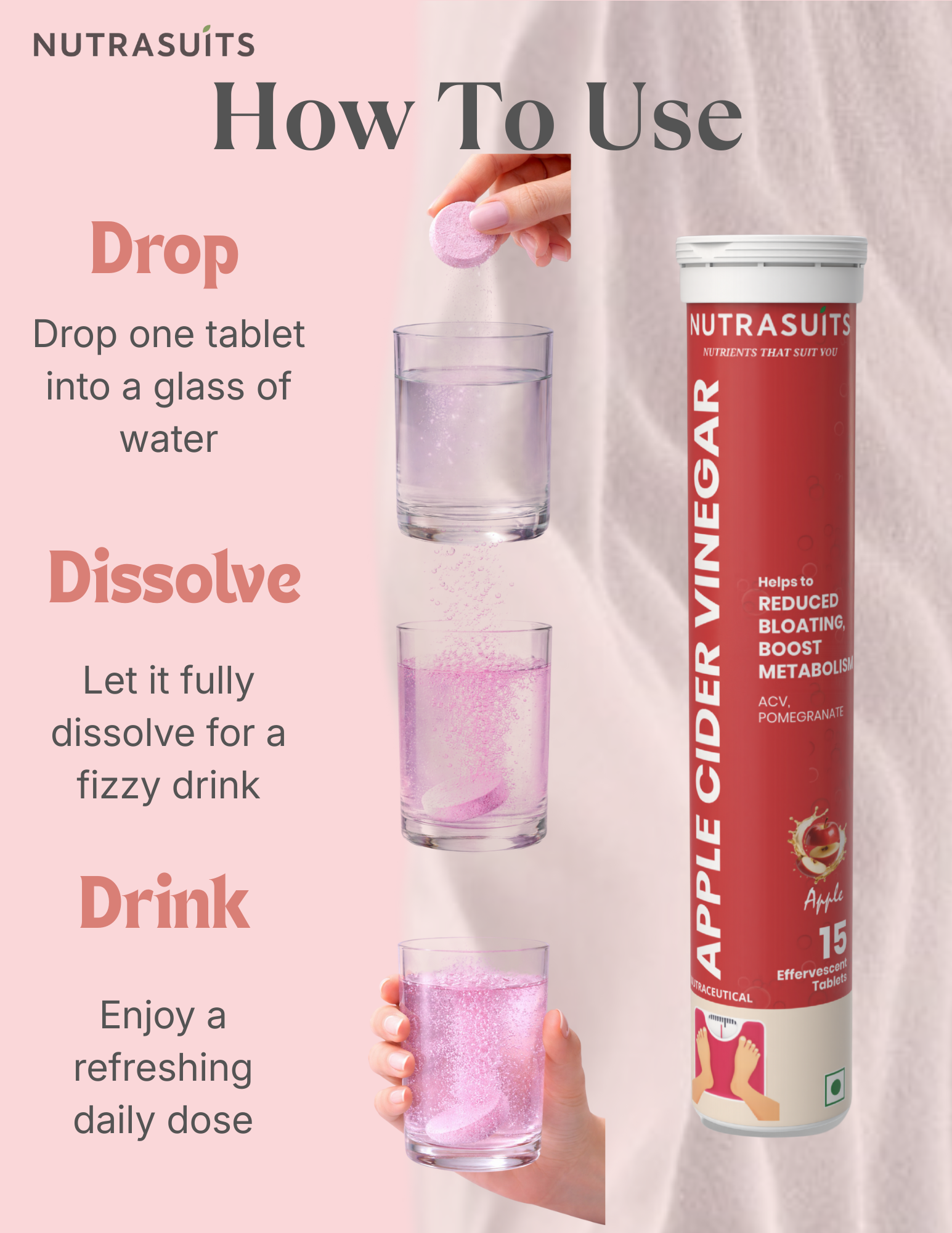 A convenient effervescent alternative to traditional liquid apple cider vinegar, formulated to make daily use simpler and more enjoyable. It is designed to support healthy digestion and overall metabolic wellness while eliminating the harsh taste and acidity of liquid forms. Easy to dissolve and gentle on the routine, it offers a practical way to incorporate apple cider vinegar into everyday life with consistency.